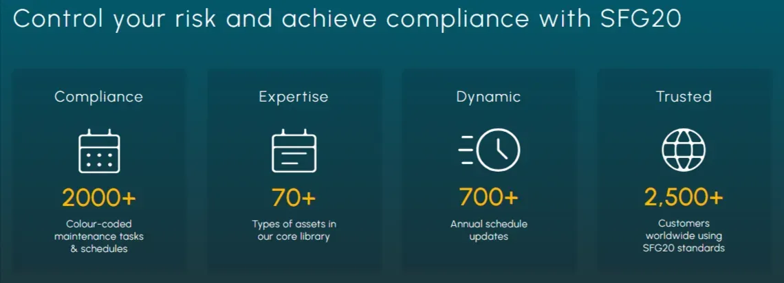 That’s why SFG20 has been the trusted standard to help you manage these risks. Its comprehensive library contains over 2,000 asset-specific maintenance schedules designed by a team of expert technical authors who regularly assess the latest legislation and best practices.