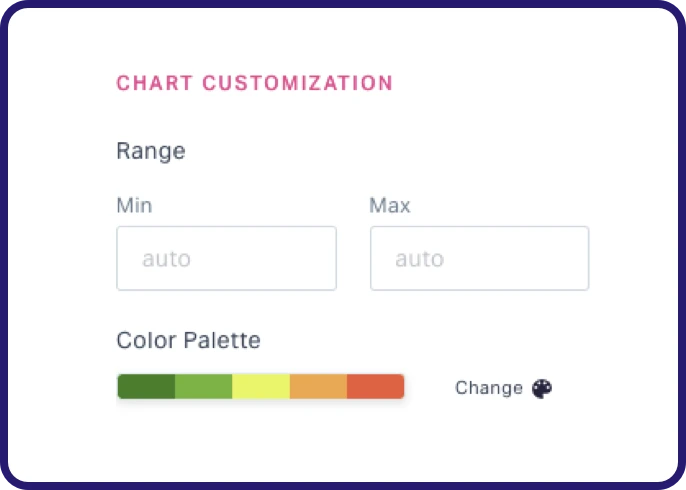 Create distinguishable heatmap reports with a customizable color palette. Apply aggregate functions on base data to analyze property performance in many ways.