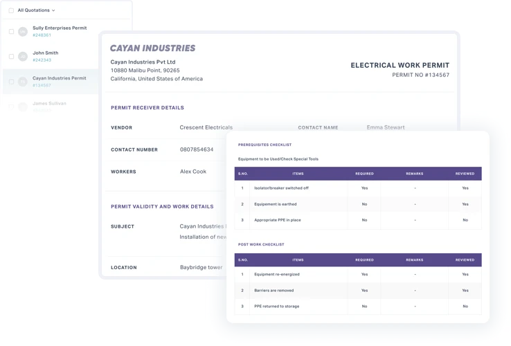 With digital permits, you'll be well-equipped to ensure safety compliance for high-risk activities is always met. Not just create, you can also authenticate, surrender, and execute post-work permit procedures from within a single interface.