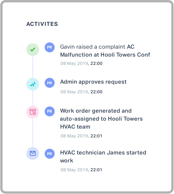 Provide branded experience via tenant portal, live chat bot and more, enabling your customers to raise complaints, track progress and follow-up in real time